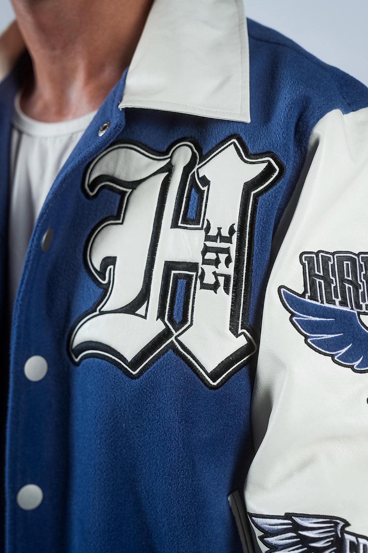 Fabric & Fit: Crafted with a heavyweight melton wool body and durable PU leather sleeves, this jacket offers structured warmth with a timeless varsity silhouette. Ribbed cuffs and hem for a secure, athletic fit. 720 GSM.