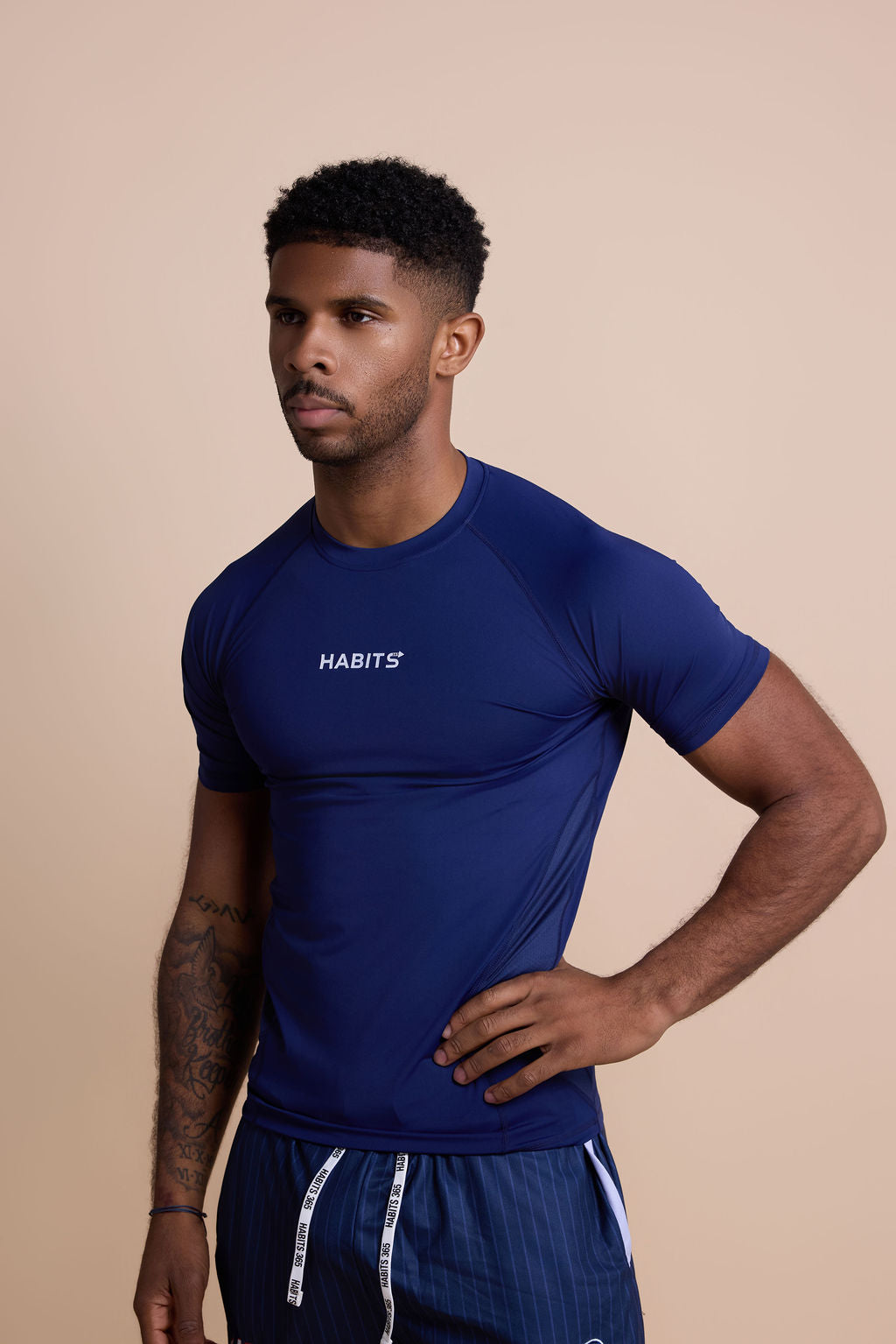 Engineered Compression. Modern Performance. Everyday Discipline.Fabric & Fit: Made from a premium 87% polyester and 13% spandex blend at 180G weight, this compression tee offers a second-skin fit with just the right amount of stretch. Designed for durability, breathability, and performance through every rep, mile, and movement.Design: Minimalist Habits 365 logo with a sleek, athletic silhouette. Built for high intensity yet styled for everyday wear — delivering form, function, and confidence in motion.Purpose: Whether you’re training, lifting, or locked in on your goals, this tee supports you with precision fit and cooling comfort.Why Habits 365?: Because discipline is built daily — and your gear should move with your mindset.Train harder. Stay sharper.